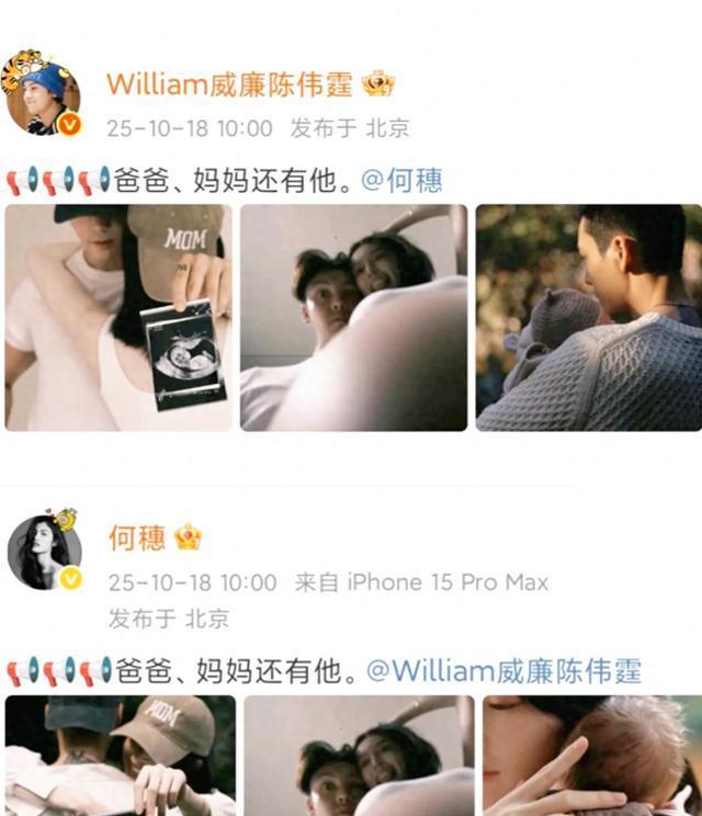 10月18号,陈伟霆一条微博直接引爆热搜:“欢迎你,我的宝贝,紧接着何穗同步回应,爱意满满。